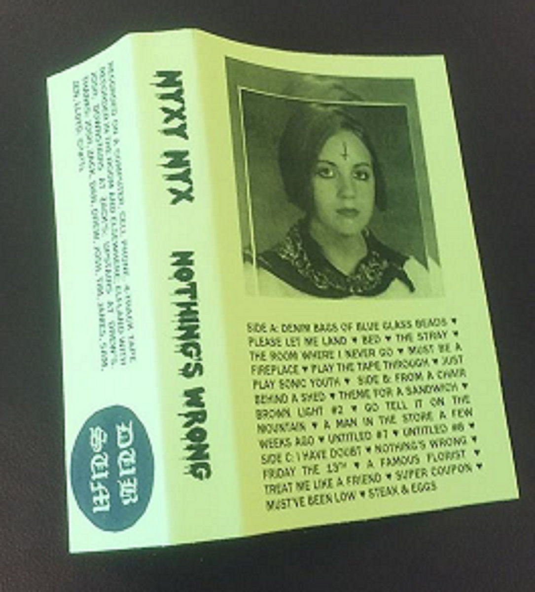 This was going to be released on Dub Sum tapes a year ago, as part of a batch of tapes being released by various bands at that time. But this one never quite made it there. I put together this J-card and printed a few on that good old slime green paper, and I have plenty of leftover cases - nice new shiny black/clear cases (ooh-la-la!). The only thing missing are the tapes. I dubbed *one* copy here at home and put it in a tiny library a few blocks away, but that was months ago. I do have a bunch of random 90min tapes hanging around, so if you'd like one of these just let me know and I'll make a copy. You can just click the "contact nyxy nyx" link on this page, wherever that is, and let me know or give me a call or find me in the streets.